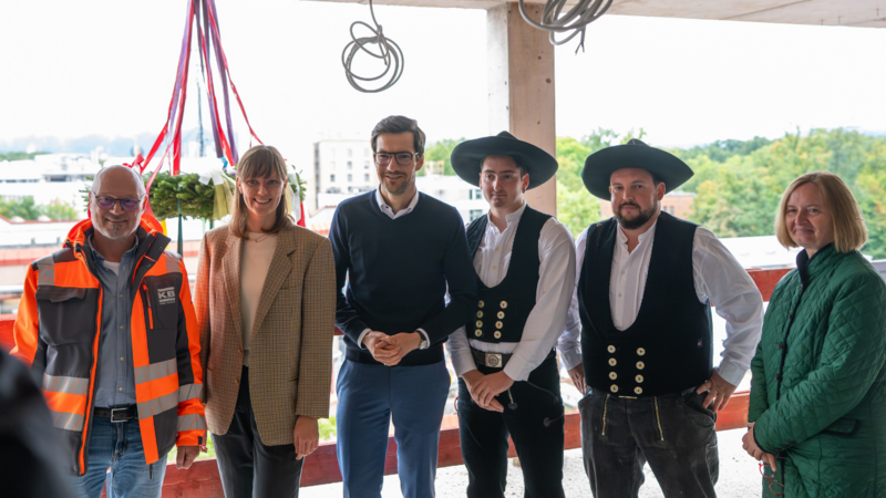 „Der Rohbau steht – wir sind im Plan. Das Können und der Einsatz aller Beteiligten insbesondere aus Planung und Handwerk haben es ermöglicht, dass wir ein gemeinsames Richtfest und den planmäßigen Fortschritt des Baus feiern können“, lobt Dr. Magdalena Szablewska, Technische Geschäftsführerin der FSB, und ergänzt: „Die Holzhybrid-Konstruktion kombiniert modernen Städtebau mit nachhaltigen Materialien – so entsteht ein zukunftsorientiertes Gebäude, das Nachhaltigkeit mit moderner Architektur verbindet.“